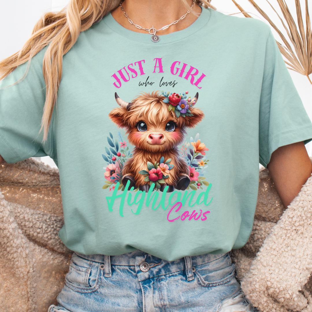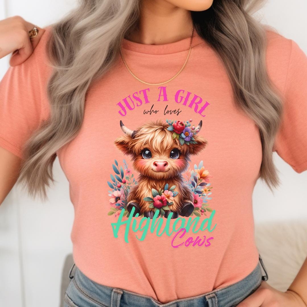 Embrace your love for Highland Cows with this fun and adorable tee. This t-shirt features a whimsical design of a Highland Cow surrounded by flowers. It captures the playful and spirited nature of these adorable fluffy animals. Wear it proudly to show your love of Highland Cows or give as a gift to a fellow Highland Cow lover!